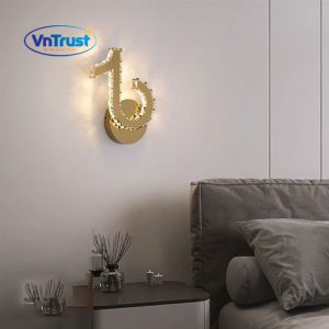 ✨ Thiết kế độc đáo: Khối pha lê uốn cong nghệ thuật, tạo điểm nhấn mềm mại cho tường.
