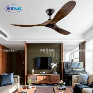 - 🚀 Cánh quạt: 3 cánh gỗ cong, gỗ tự nhiên màu nâu đậm