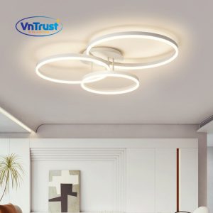🎨 Phong cách tối giản – ba vòng LED đan xen, phù hợp mọi không gian hiện đại.