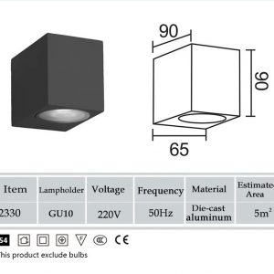 Thông tin chi tiết sản phẩm: Đèn hắt tường 1 đầu trang trí bóng Gu10 5w VN-2330