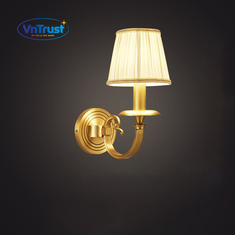 ✨ Kiểu dáng cổ điển sang trọng: Thân đồng đúc hoa văn tinh xảo, chao lụa trắng mang đậm phong cách Hoàng gia châu Âu.