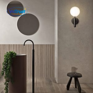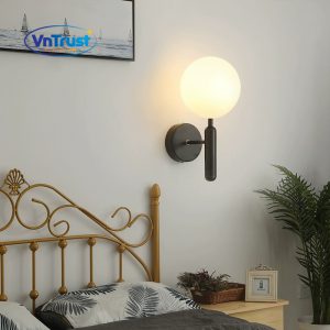 🌑 DT1150_Đ như ngọn ngôi sao giản dị trên mảng tường đen, với chao thủy tinh hình cầu trắng vẹn nguyên, toát lên vẻ hiện đại và thanh lịch.