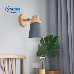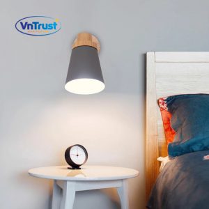 🔨 Thân gỗ tự nhiên kết hợp khung kim loại, đỡ lấy chao nón sắt sơn tĩnh điện đen