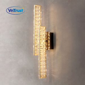 Bứt phá khỏi khuôn khổ thông thường, Đèn tường DT1204 hiện lên như “tháp pha lê” chạm lên bầu trời nghệ thuật, từng khối pha lê tỉ mỉ khắc họa vầng sáng ấm áp, lan tỏa tinh hoa vào không gian sống.