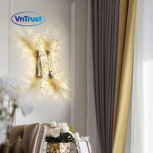 🎶 Hai thanh pha lê uốn cong đối xứng như giai điệu đôi, DT1219 hòa nhịp với không gian, tạo nên bản giao hưởng ánh sáng mềm mại. Khi bật đèn, vệt sáng lung linh tỏa ra hai bên, vẽ nên dấu ấn nghệ thuật sống động trên tường.