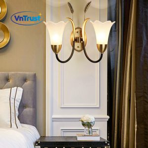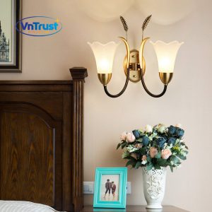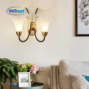 🏭 Chất liệu: Khung kim loại mạ vàng – đen & chao kính trắng mờ họa tiết hoa tulip
