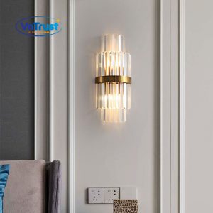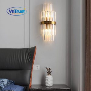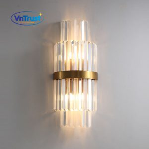 🌟 ĐÈN VÁCH PHA LÊ VnTrust MK-CR05 – 2 BÓNG E14 THÁC KÍNH VÀNG